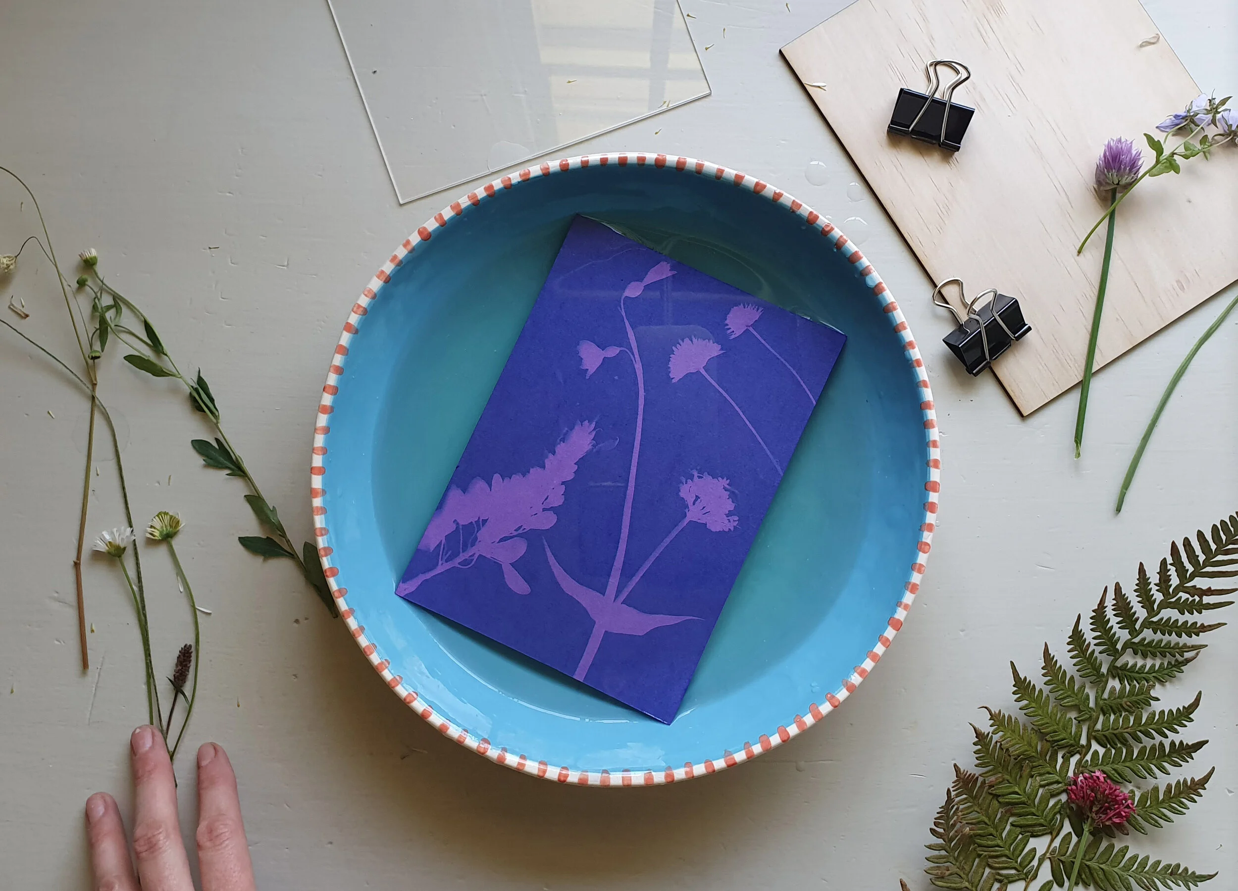 Cyanotypes are an early photographic process of creating a ‘blue-cyan-print’ by exposing a specially treated paper to sunlight.